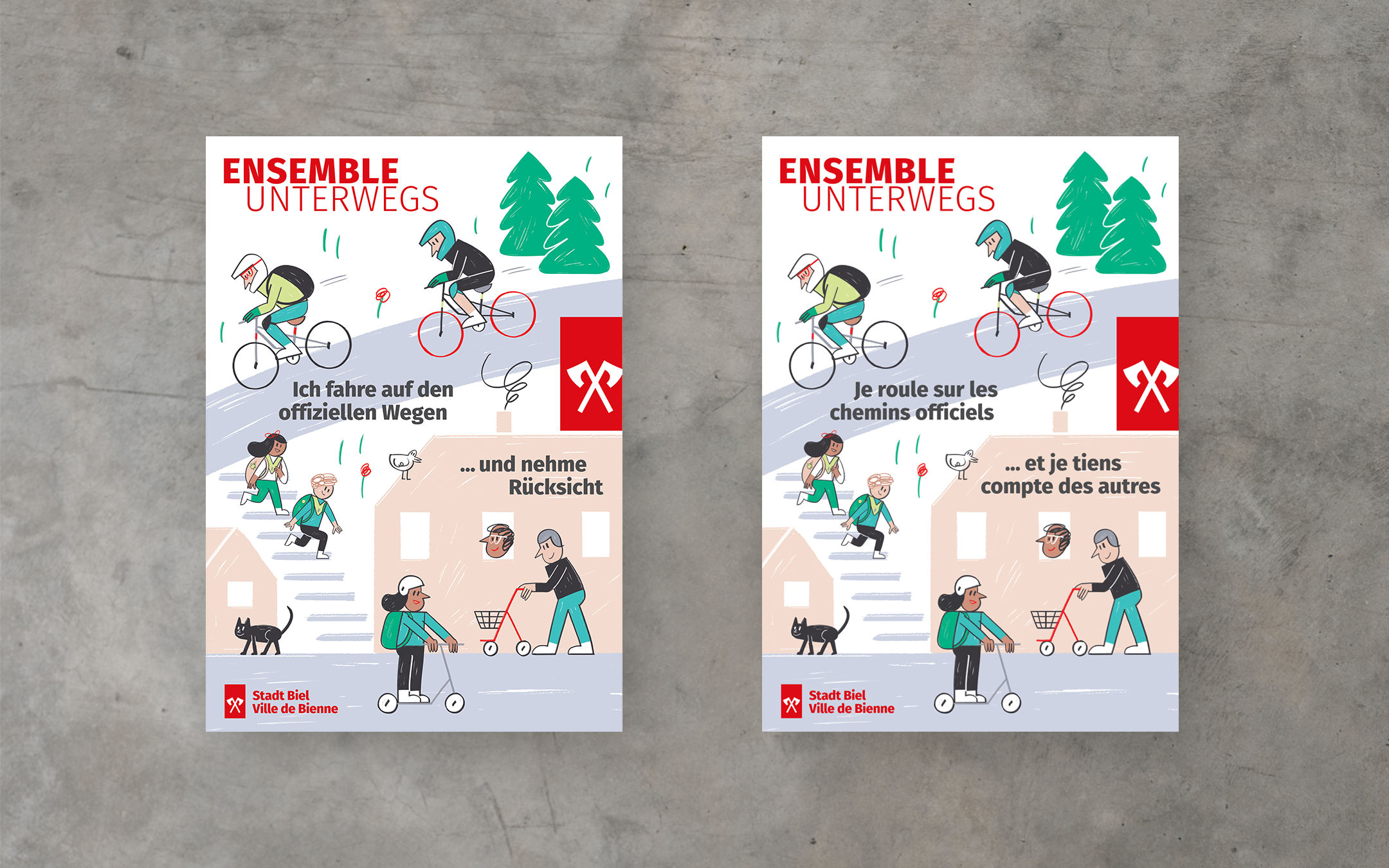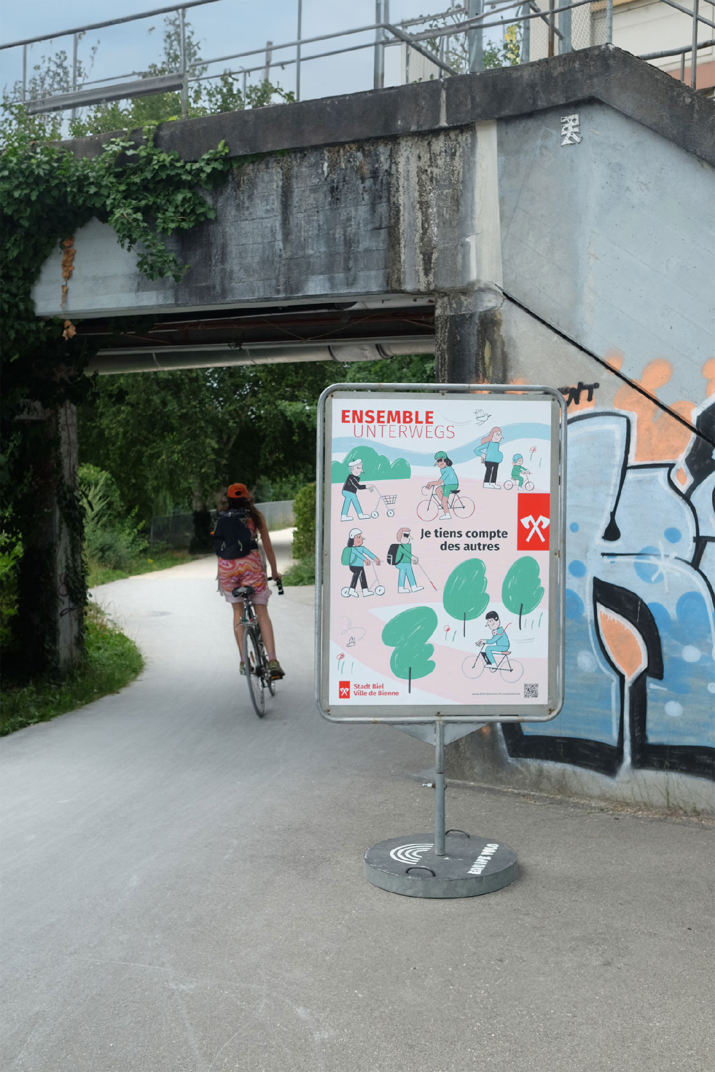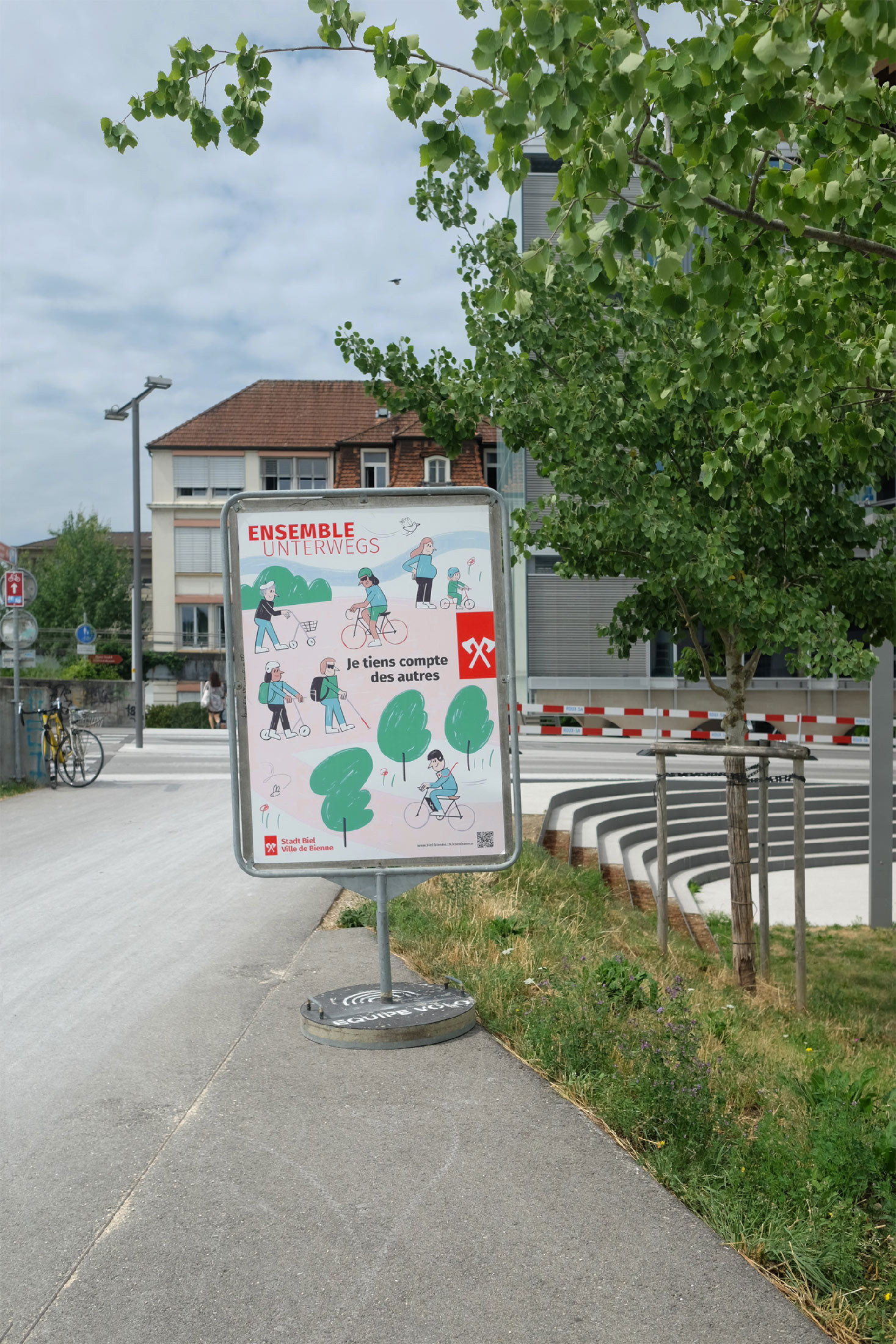 Grosse Kampagne für die nachhaltige Mobilität in Biel. In enger Zusammenarbeit wird die neue Mobilitätskarte der Stadt Biel konzipiert und gestaltet. Diese bietet eine gute Übersicht über das Bieler Velonetz und viele praktische Zusatzinfos. Zusätzlich dazu wird eine Sensibilisierungs-Plakatkampagne zum Thema Koexistenz entwickelt, welche präsent in der Stadt auf das Thema aufmerksam macht.