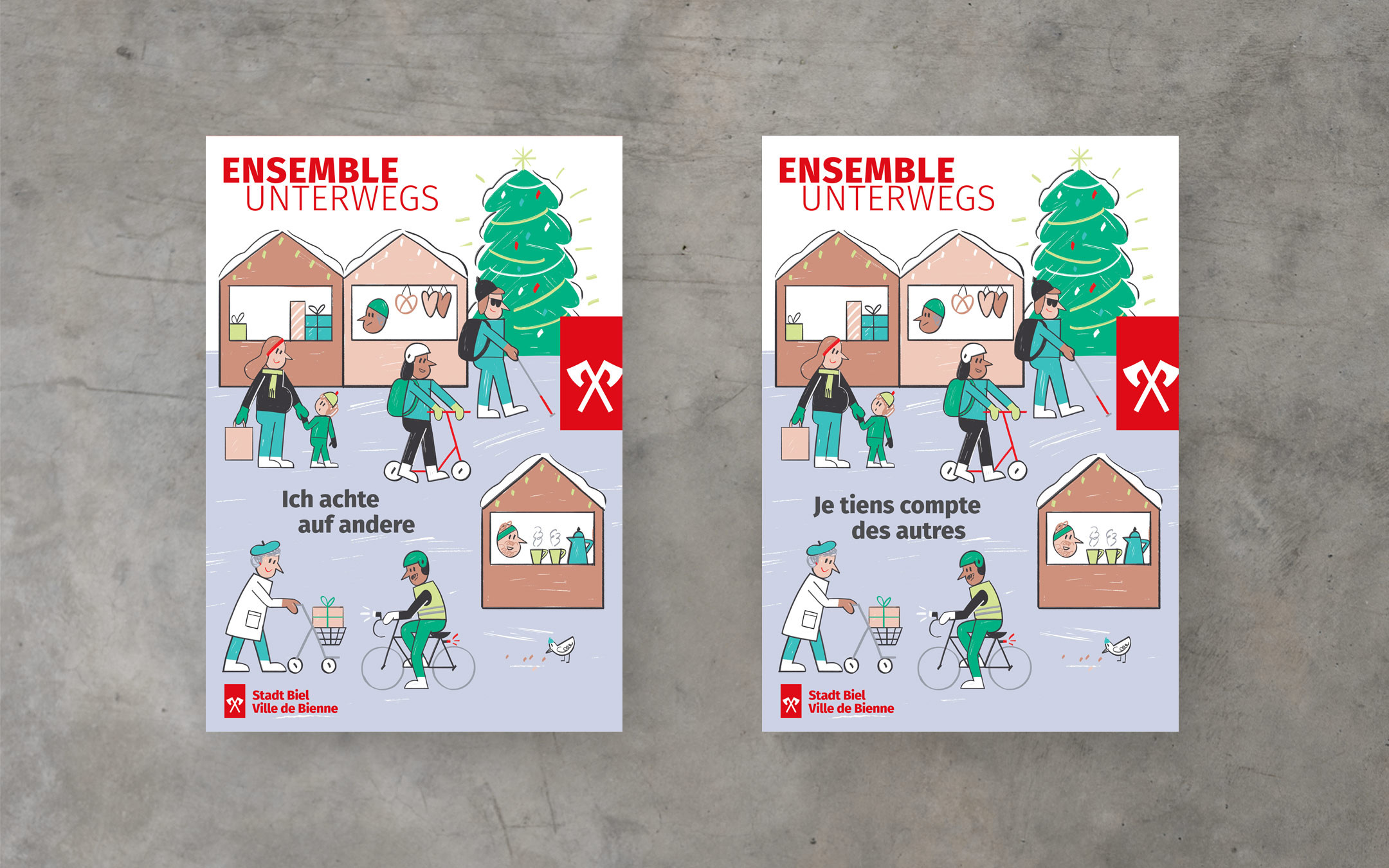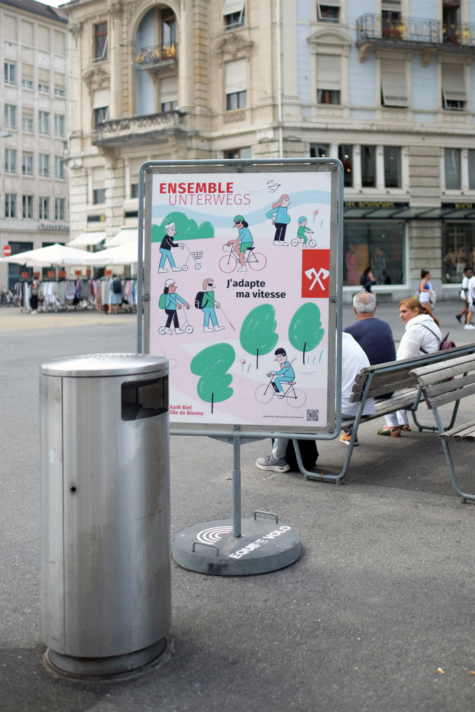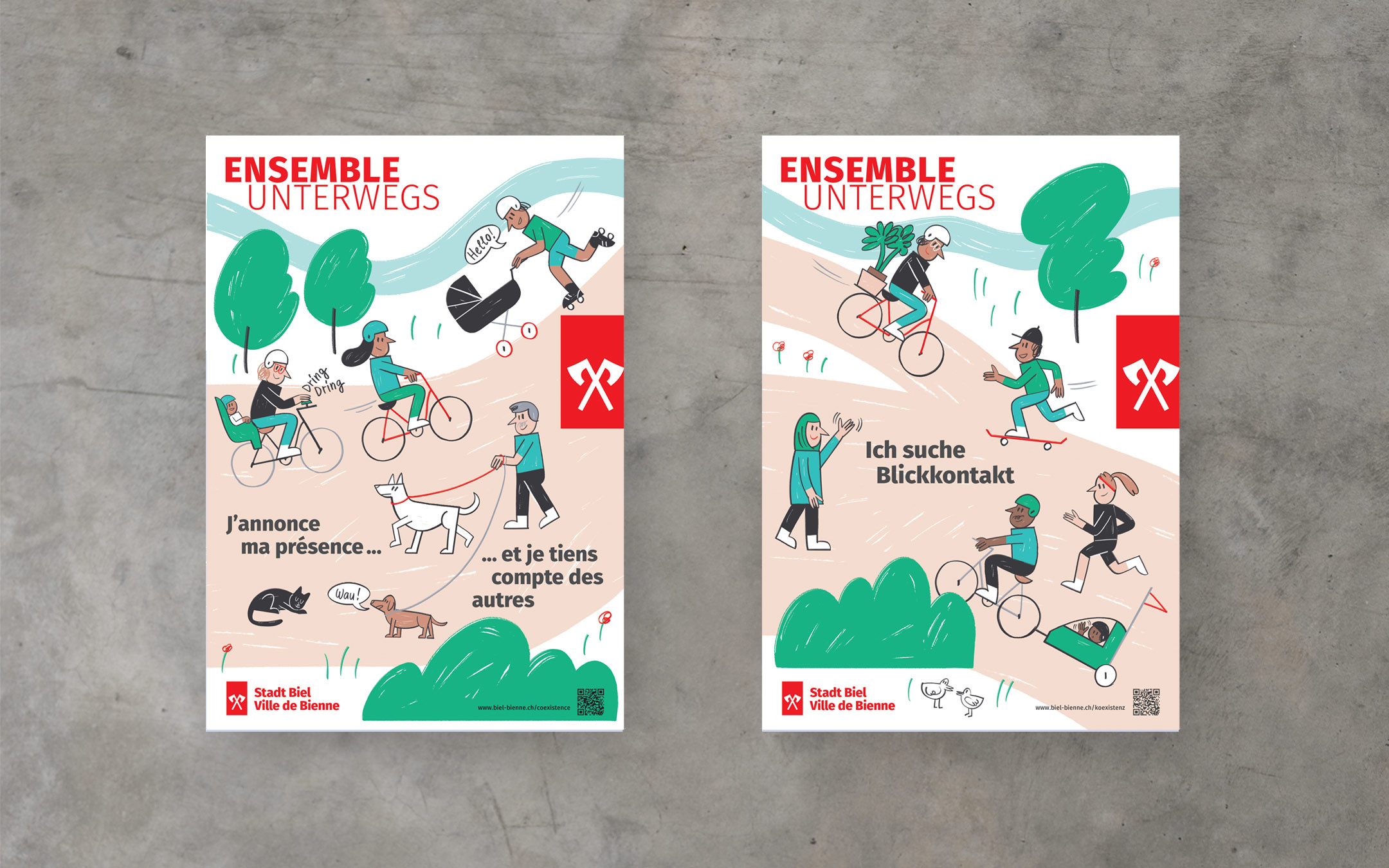 Grosse Kampagne für die nachhaltige Mobilität in Biel. In enger Zusammenarbeit wird die neue Mobilitätskarte der Stadt Biel konzipiert und gestaltet. Diese bietet eine gute Übersicht über das Bieler Velonetz und viele praktische Zusatzinfos. Zusätzlich dazu wird eine Sensibilisierungs-Plakatkampagne zum Thema Koexistenz entwickelt, welche präsent in der Stadt auf das Thema aufmerksam macht.